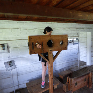 Le Fort Atkinson est l'un des plus grands restant de cette époque. Près de 1 000 personnes y étaient installées et disposaient du stricte nécessaire. Un hôpital, une prison, des armes, de quoi chasser pour se nourrir... l'indispensable pour une vie dite primitive. A part chasser, nettoyer le fort et entretenir leurs armes, les soldats mourraient d'ennui. Comme je vous l'ai mentionné quelques lignes plus haut, ils étaient isolés. Mais vraiment isolés ! Tout en bois, la construction est précise et réfléchie. Je pense cependant qu'elle n'est pas suffisamment solide pour se couvrir pendant la guerre (rappelez vous le Grand Méchant Loup qui d'un simple souffle a fait péter la maison du petit cochon...).